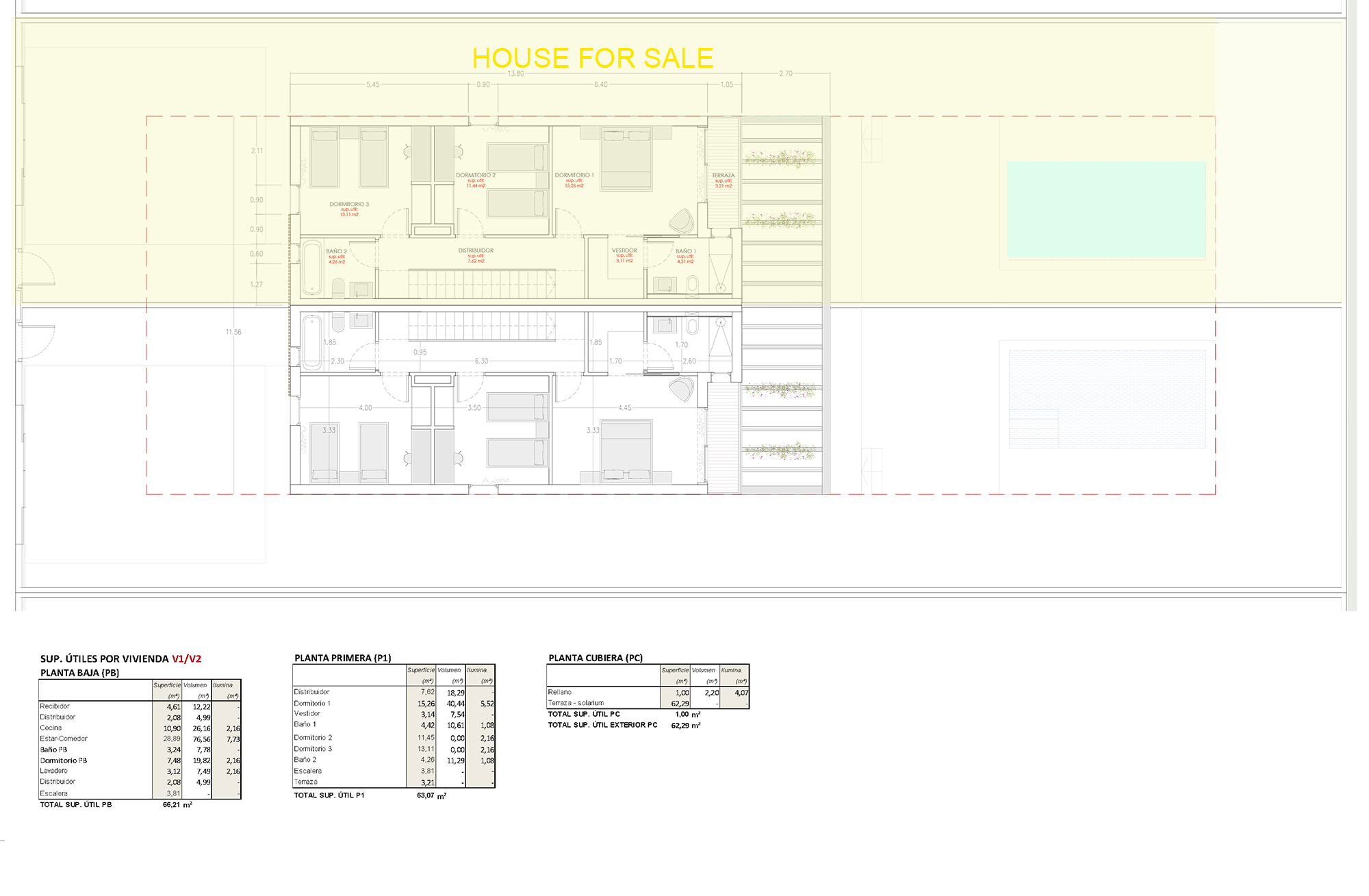 Esta casa a estrenar es completamente independiente de la casa vecina y tiene orientación sur para muchos días de sol durante todo el año. En la planta baja también hay un dormitorio y un baño de visitas, así como un lavadero bien iluminado y ventilado. Desde este gran salón encontramos un salón-comedor diáfano con cocina abierta estilo “americana” totalmente equipada. En la sala hay un gran ventanal que comunica con la terraza descubierta y el gran jardín con piscina de aproximadamente. 14 m², donde disfrutar del sol en celebraciones familiares y con amigos. Una ventaja de esta propiedad es que el jardín se puede diseñar según sus deseos debido a la nueva construcción.
